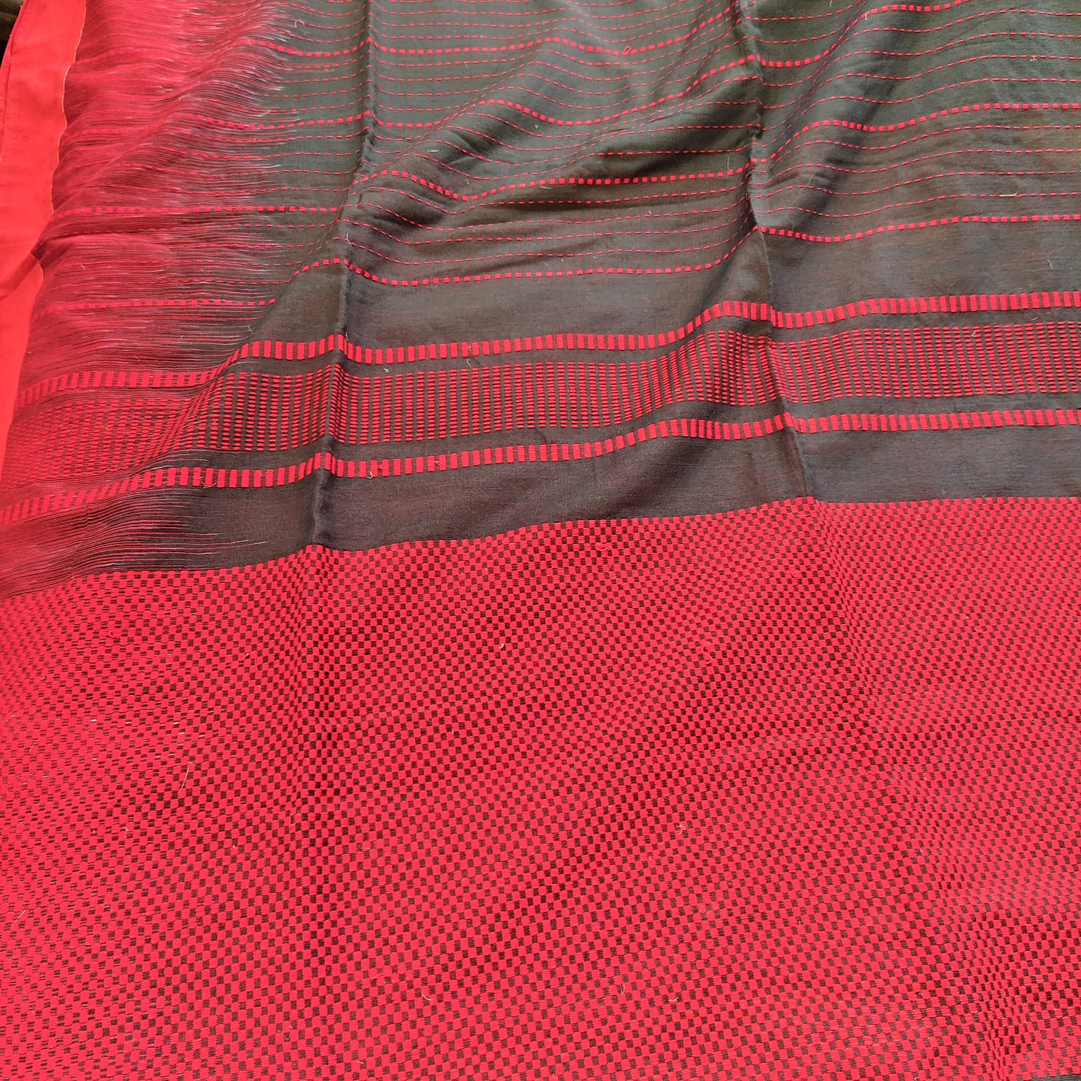 Handwoven Bengal Cotton -Black n Red