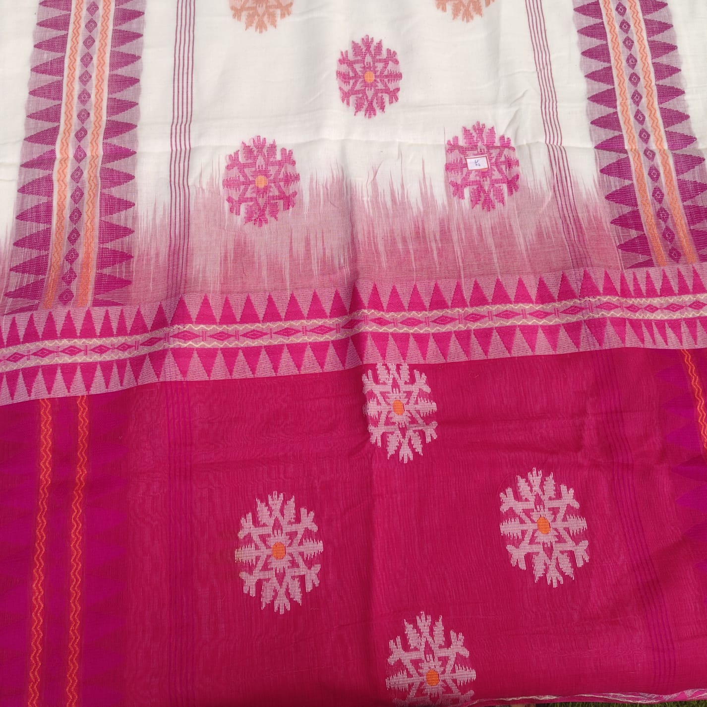 Handwoven Bengal Cotton -White-Pink