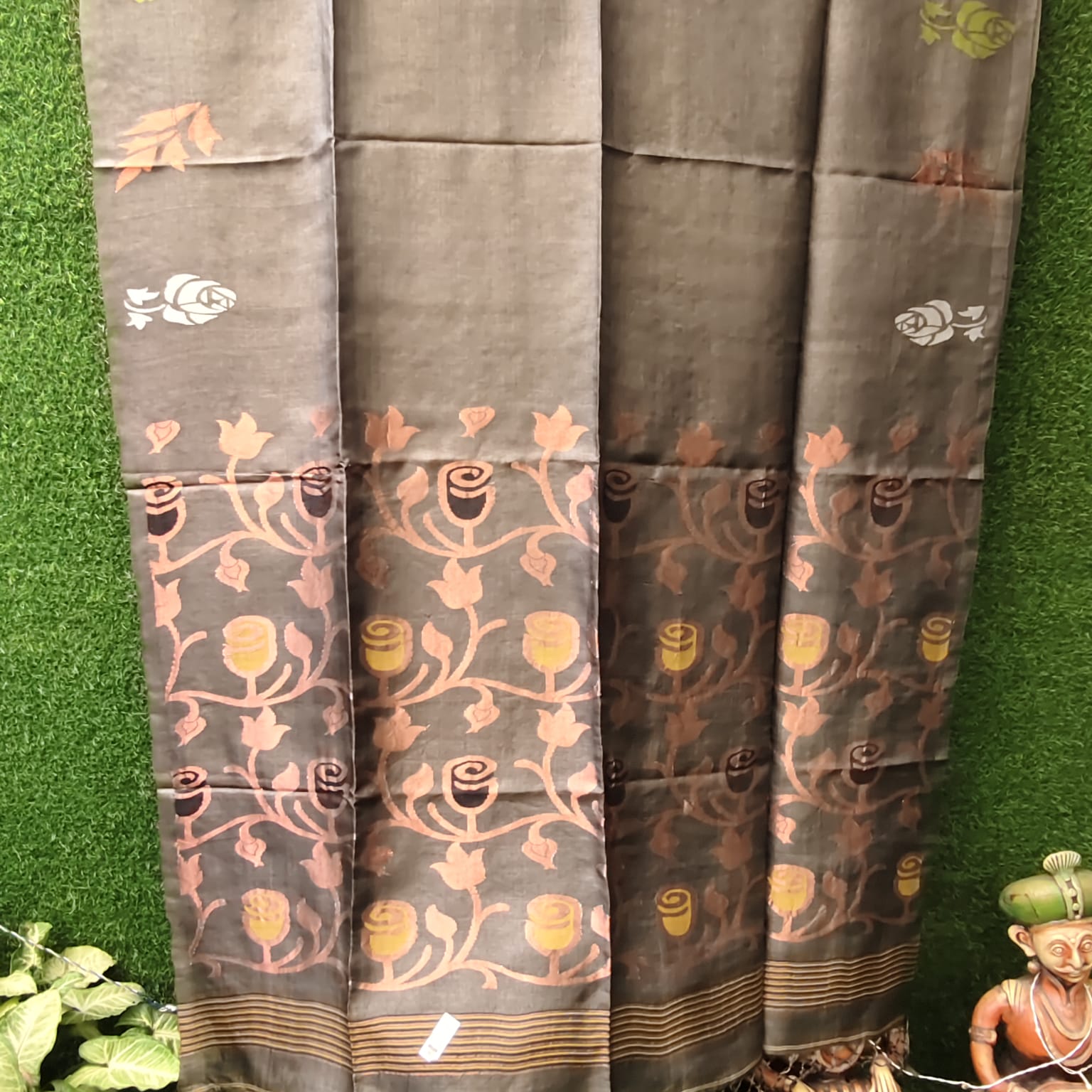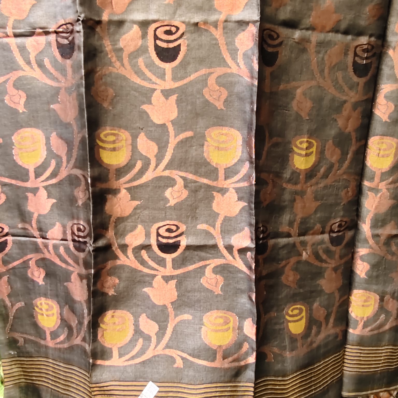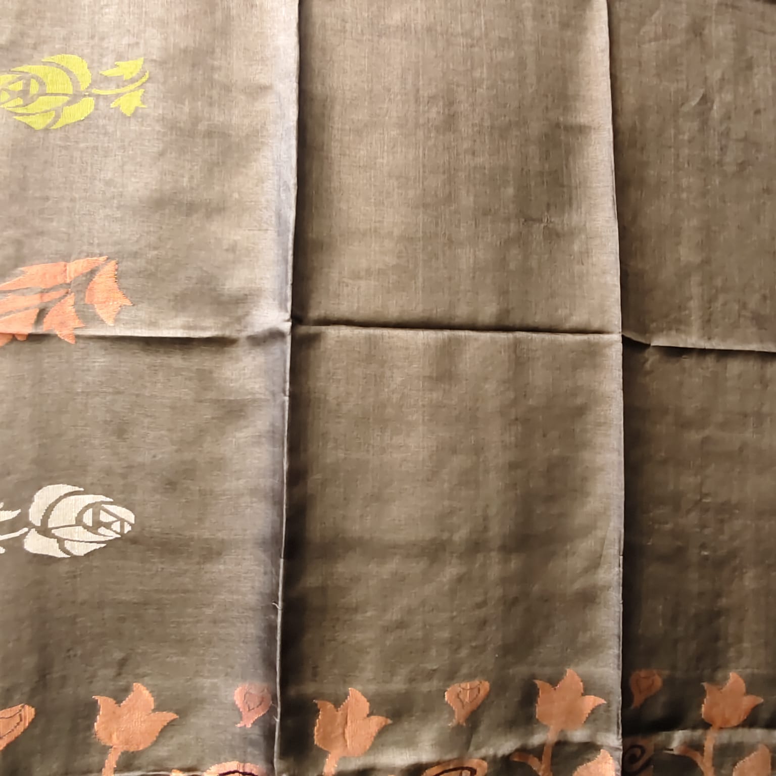 Dry clean only to preserve the Tussar silk texture and the copper zari detailing. Store carefully in a muslin cloth, away from direct sunlight, to maintain its lustre and elegance.