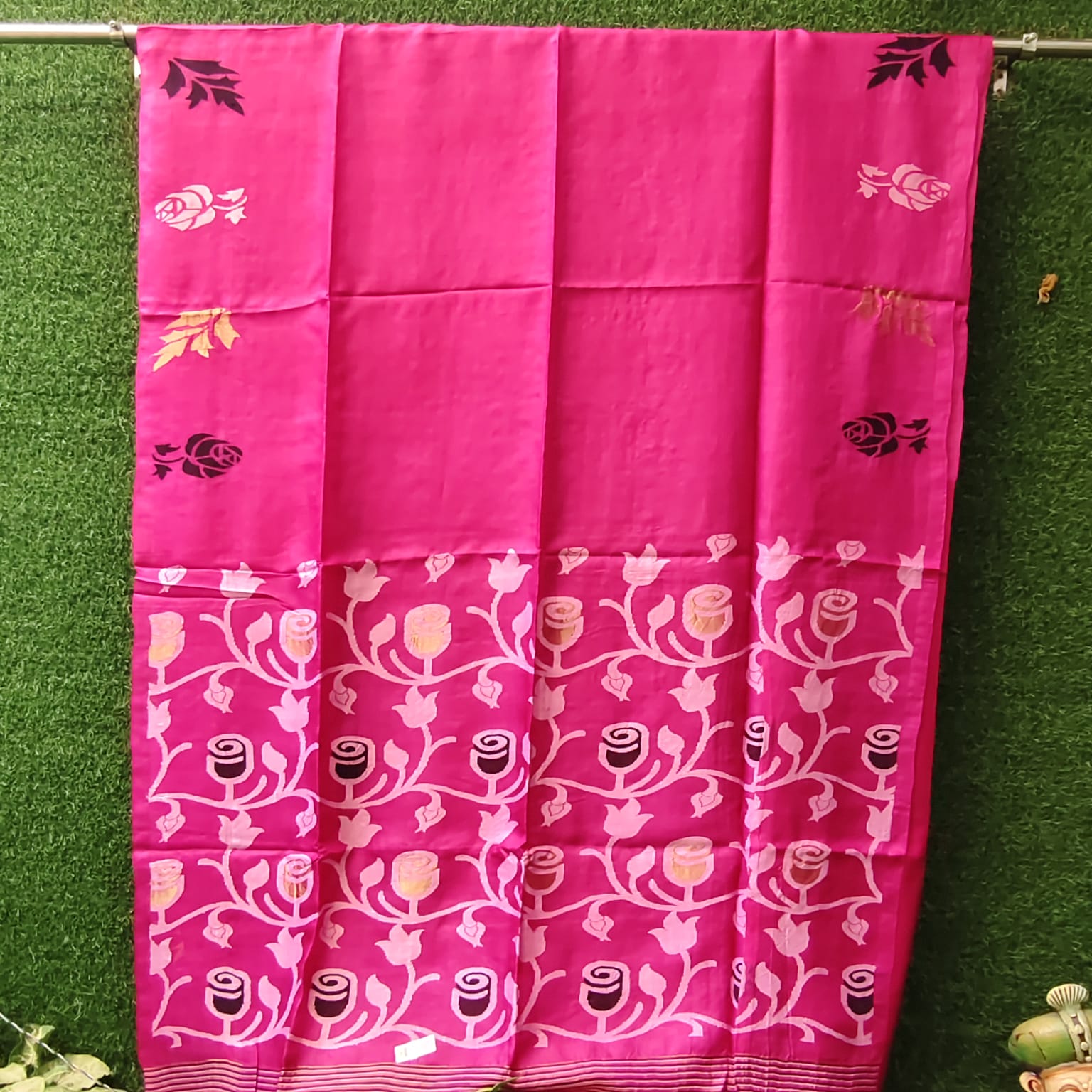Dry clean only to preserve the delicate Pure Gachi Tussar silk texture and the intricate Jamdani weaving. Store in a muslin cloth, away from direct sunlight, to maintain its lustre and richness