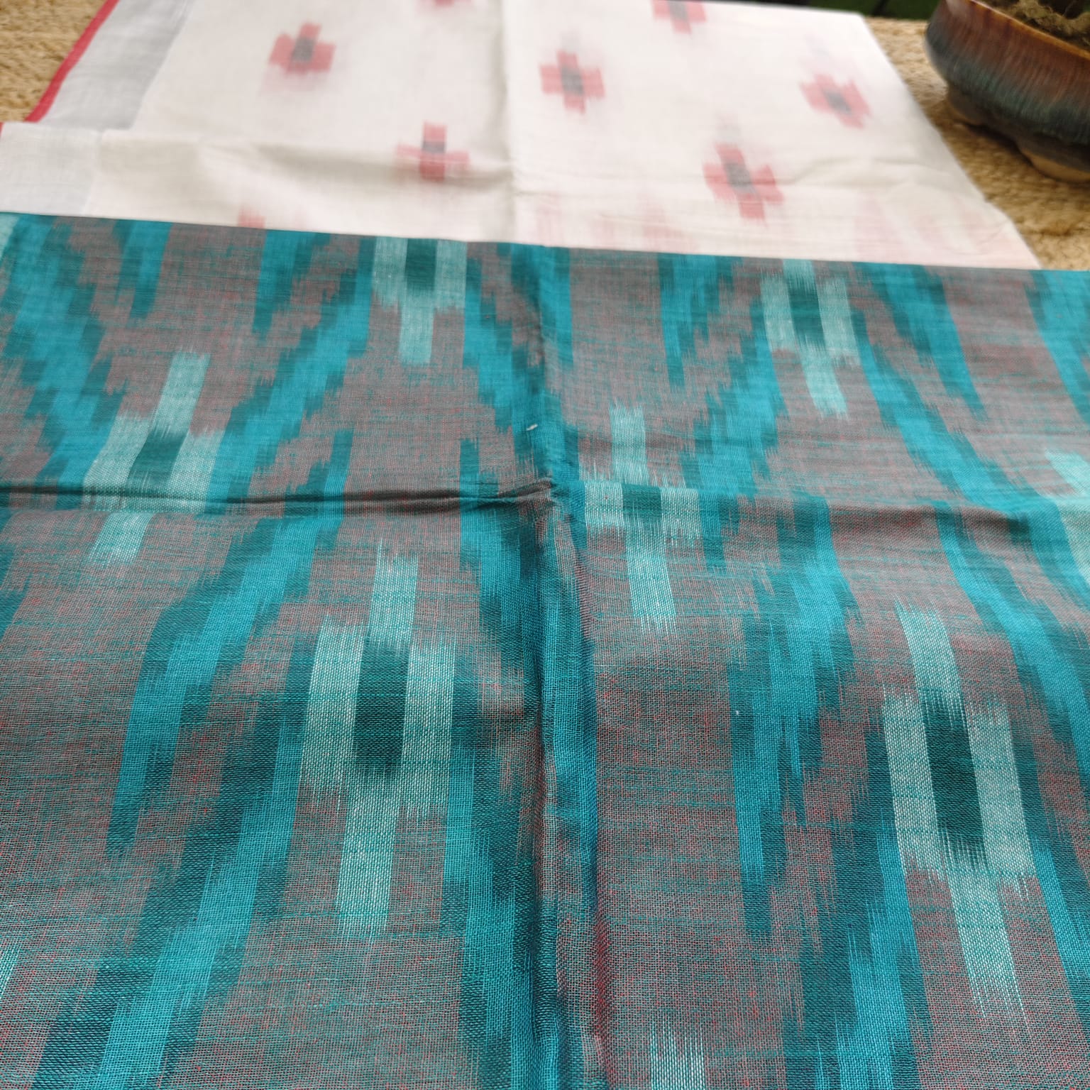 Ikkat Cotton Linen- White