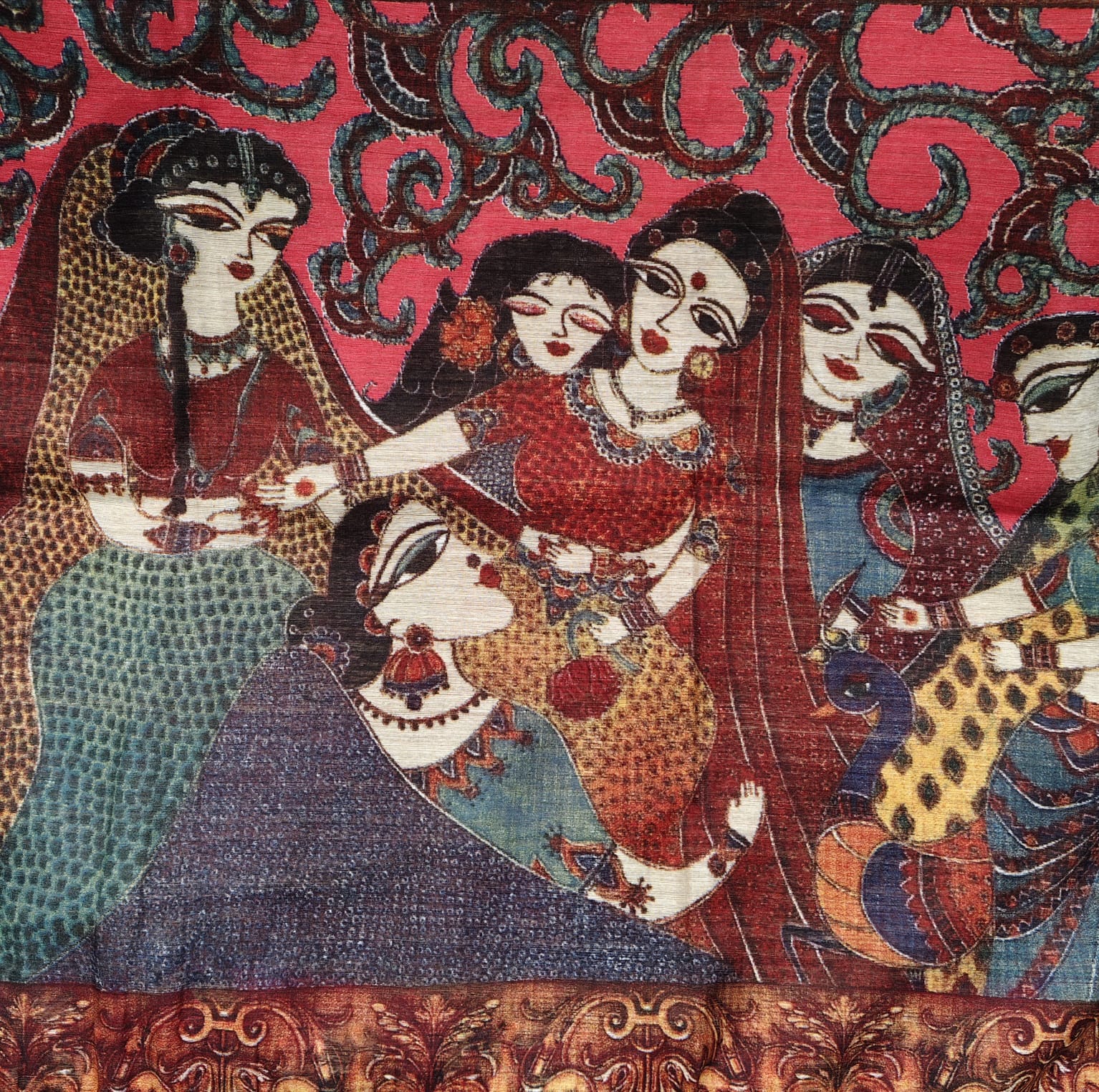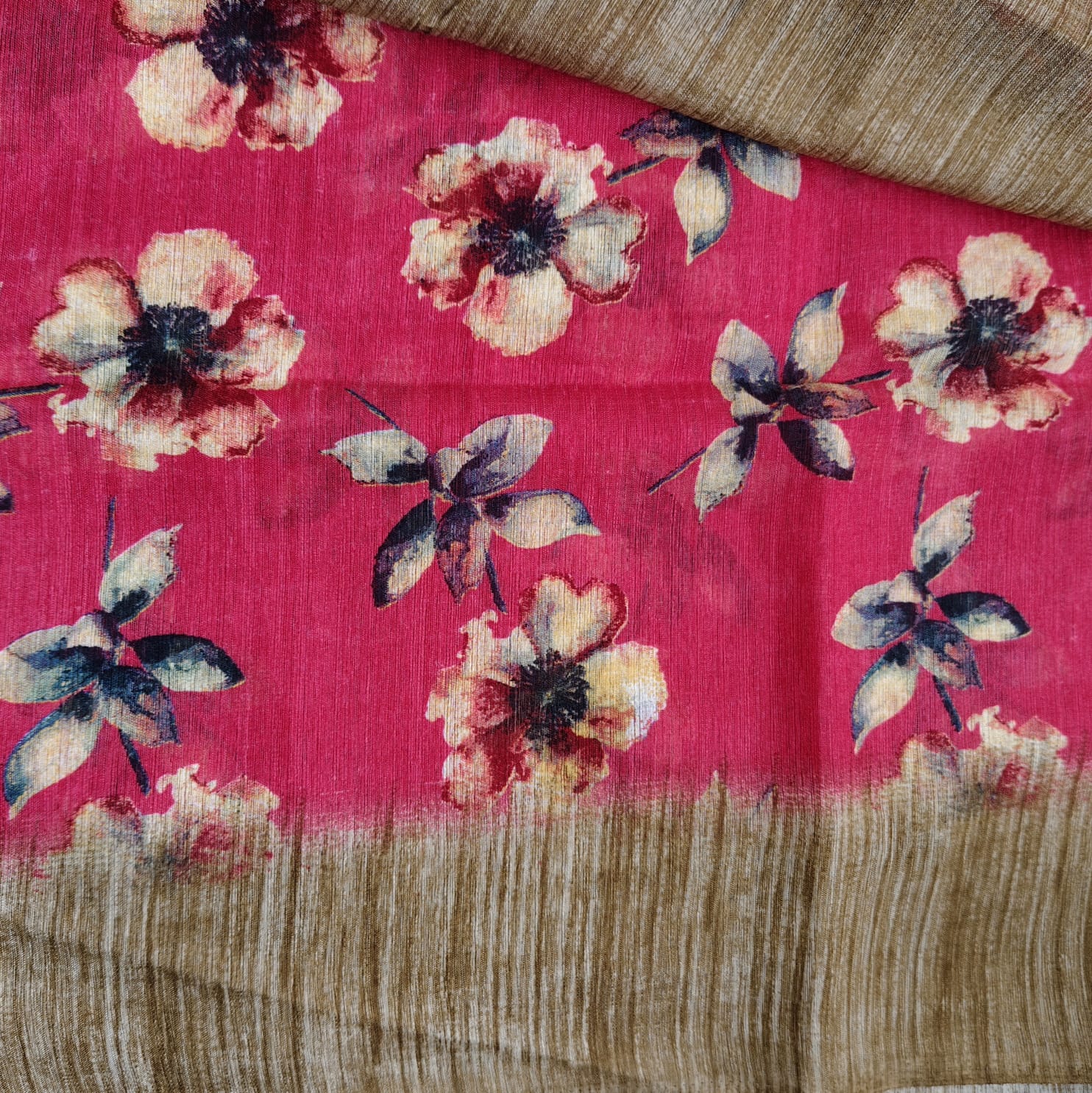 Gentle hand wash or mild machine wash at home. Avoid wringing and direct sunlight to retain the fabric’s smooth texture and the brilliance of the digital prints.