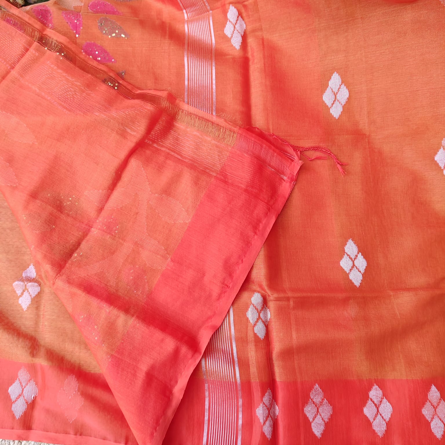 Muslin Tissue Jamdani-Tangerine Orange