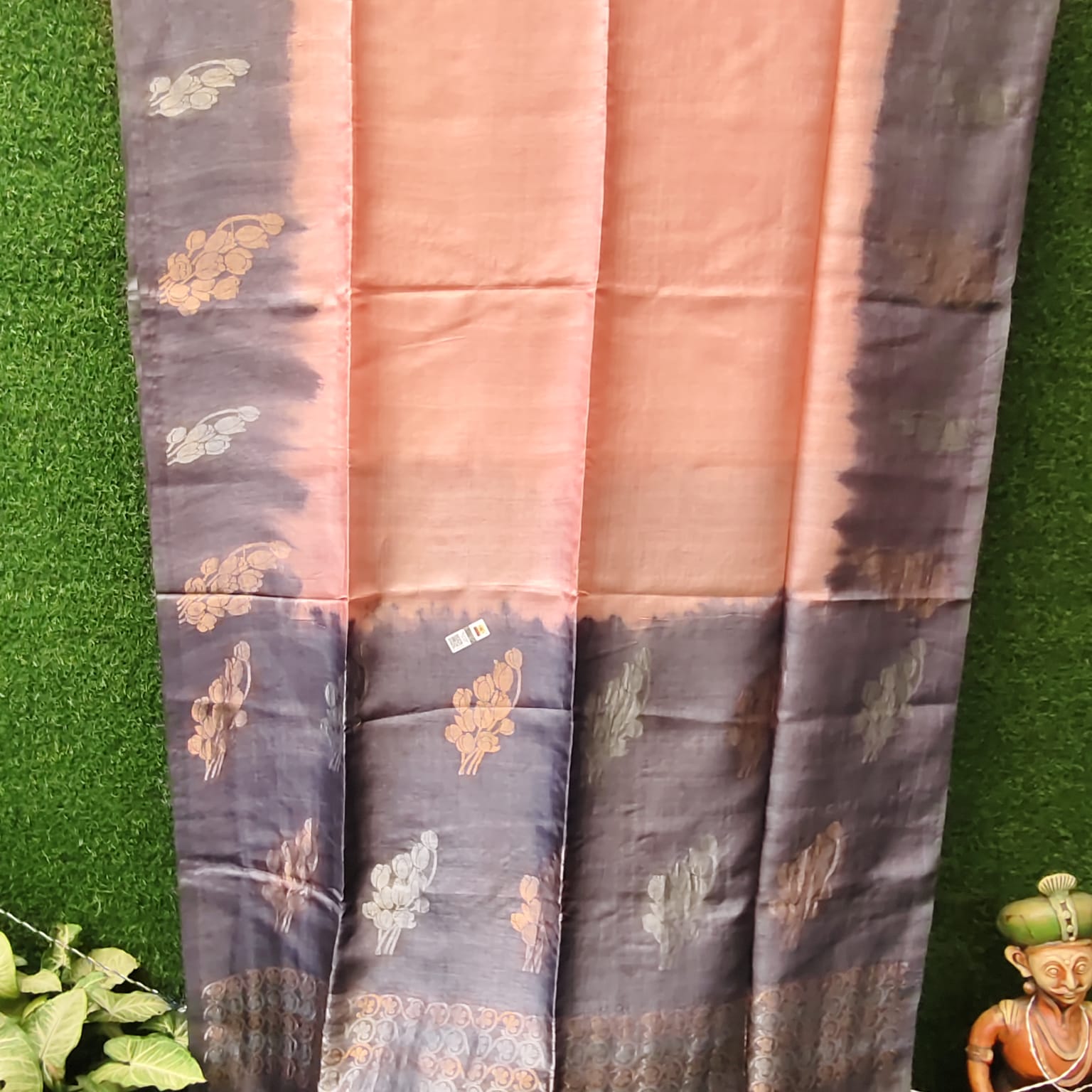 Pure Tussar Silk- Peach and Gray